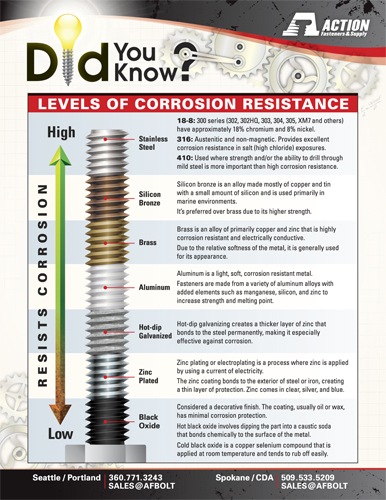 METALS / COATINGS AND THEIR LEVEL OF CORROSION RESISTANCE