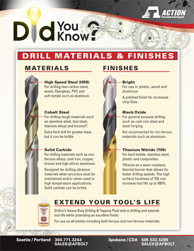 DRILL MATERIALS / FINISHES AND THEIR COMMON USES
