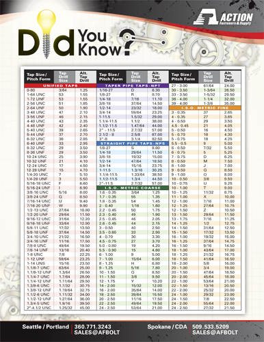 TAP DRILL SIZES
